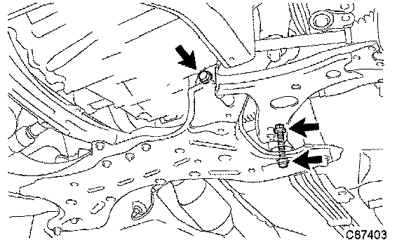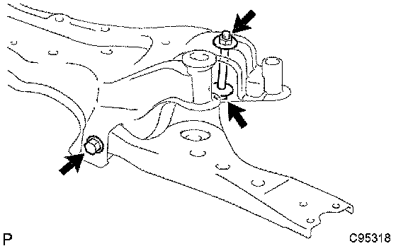 a) Install the front suspension arm sub-assy lower No.1 LH to the suspension crossmember sub-assy and temporarily tighten the front suspension arm sub-assy lower No.1 LH with the 2 bolts and the nut.
