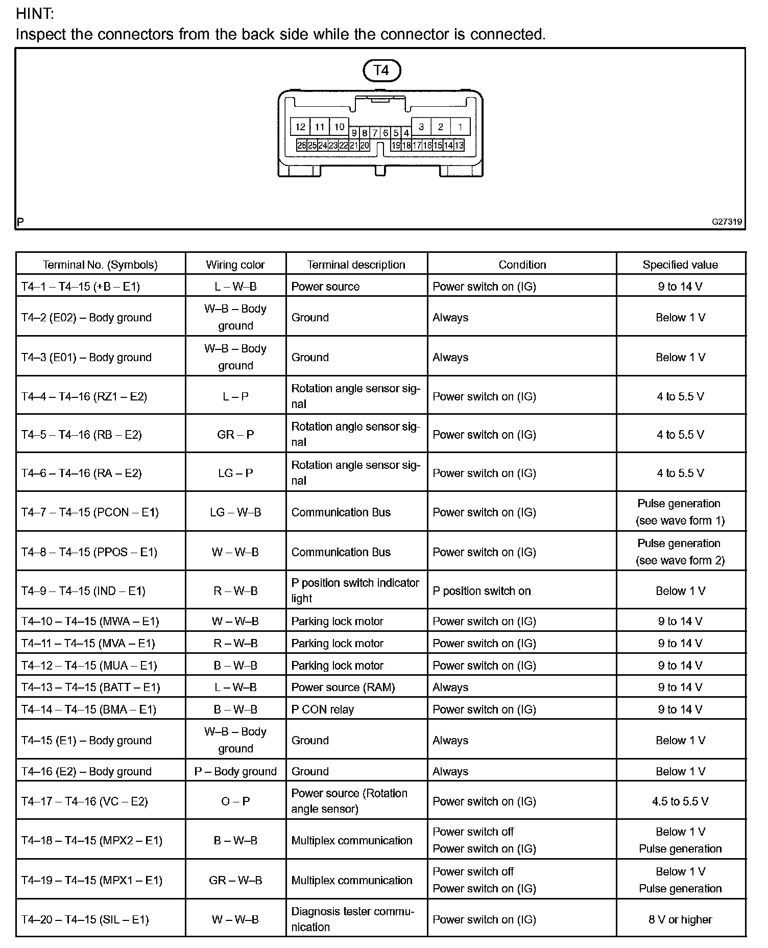 Pinout Values and Diagnostic Parameters