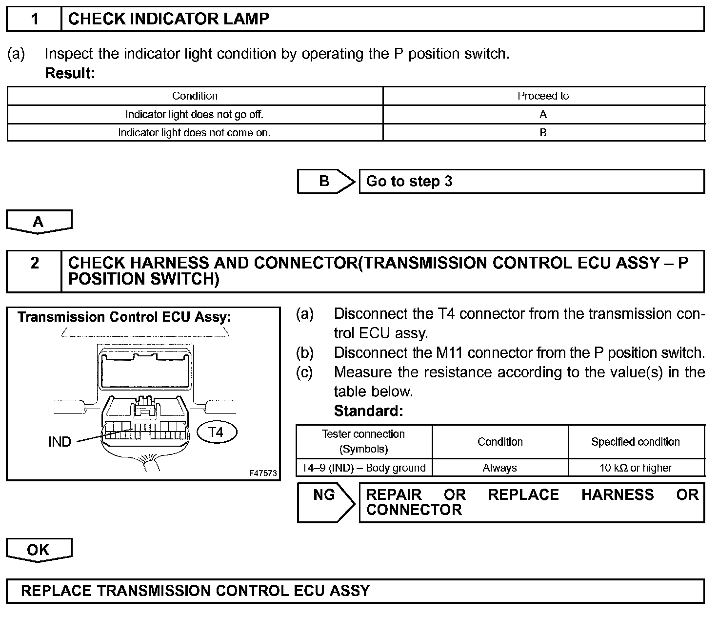 The parking lock switch indicator light comes on or goes off to indicate the on/off status of the P position switch and blinks to indicate malfunction conditions of the system.