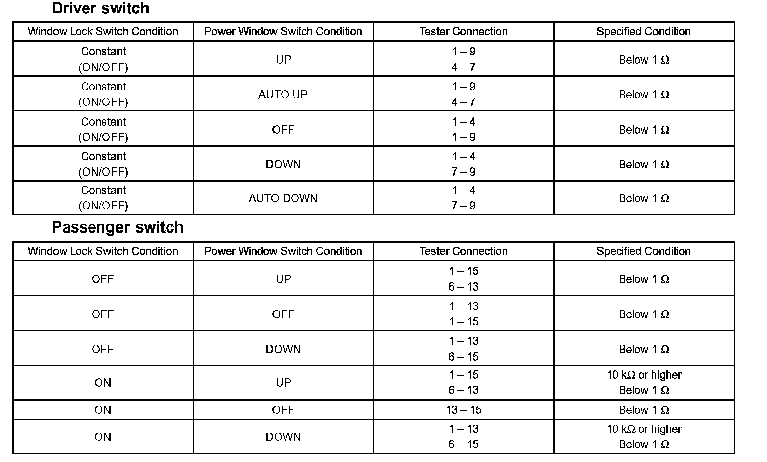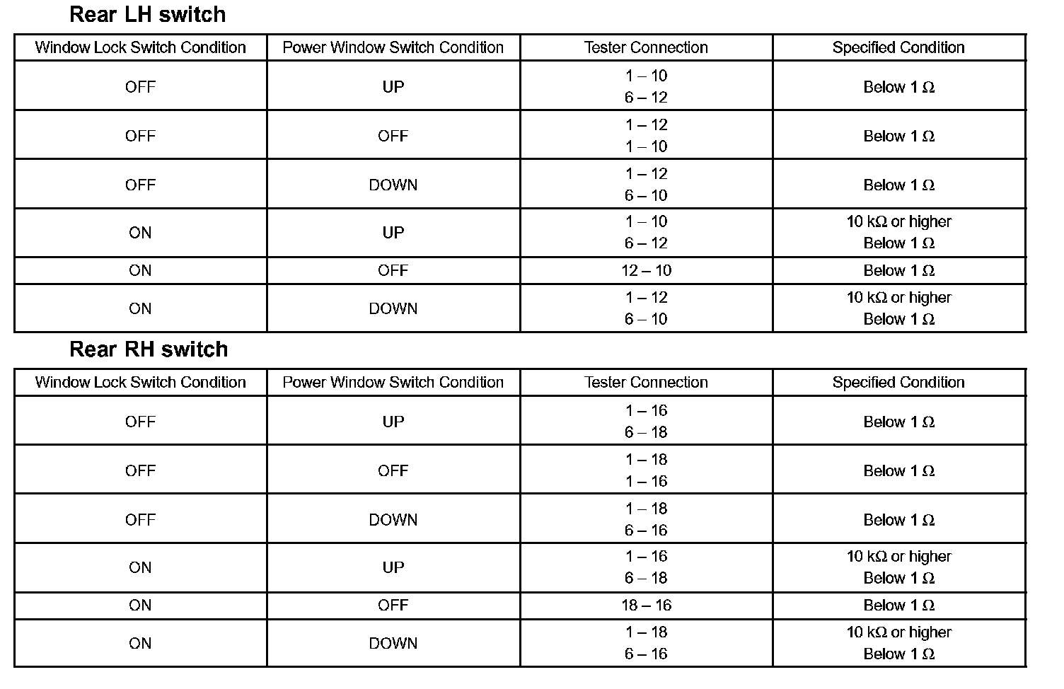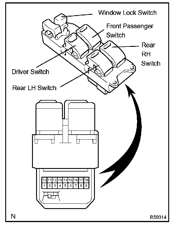 INSPECT POWER WINDOW REGULATOR SWITCH ASSEMBLY