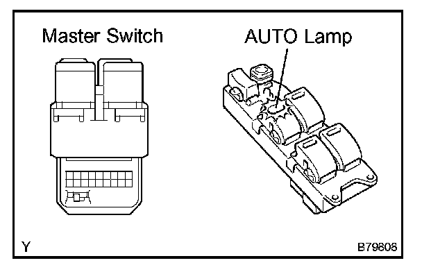 INSPECT POWER WINDOW REGULATOR MASTER SWITCH ASSEMBLYa. Remove the master switch.