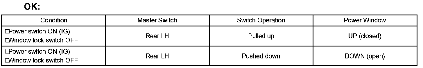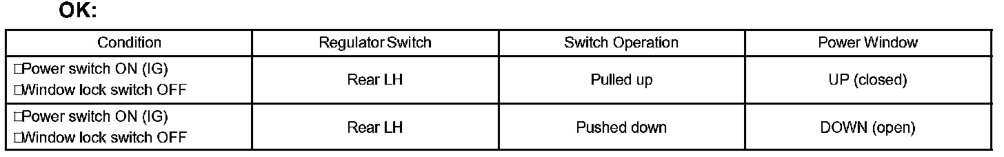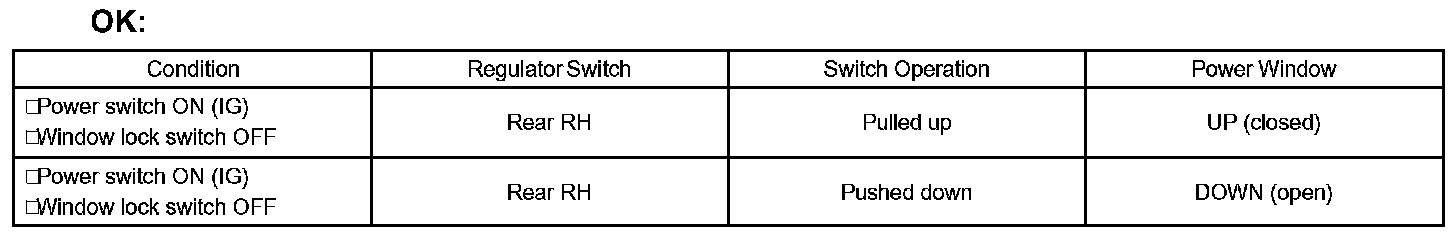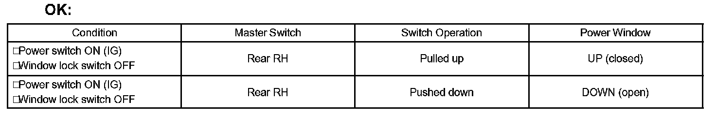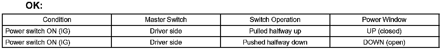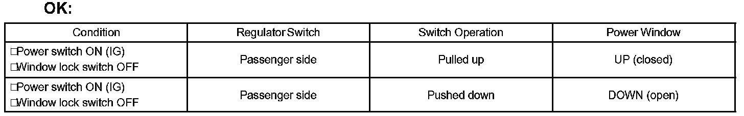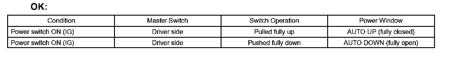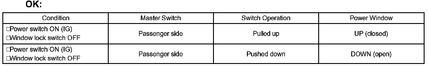 a. Check that the passenger side power window and rear power windows operation are disabled when the window lock switch of the power window regulator master switch assembly is pressed.
