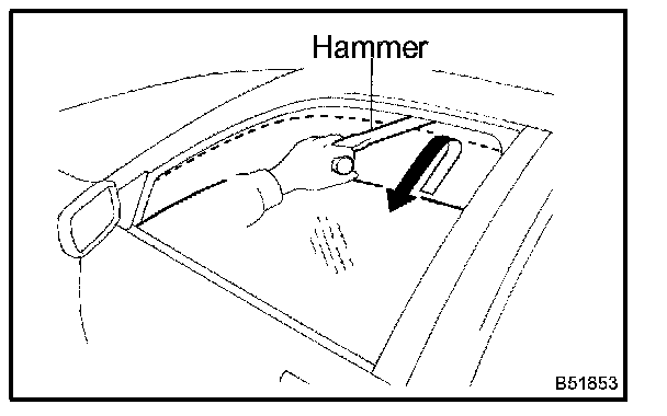 a. Check that the door glass lowers by approximately 50 mm (1.97 in.) when something is caught between the door frame and door glass during power window operation. However, when the opening between the door frame and the door glass is less than 200 mm (7.87 in.), the door glass continues to lower and does not stop until an opening of 200 mm (7.87 in.) is achieved.