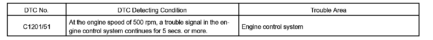 If trouble occurs the engine control system, the ECM transmits the abnormality to the skid control ECU. The skid control ECU set this DTC and the skid control ECU prohibits TRAC and VSC control.