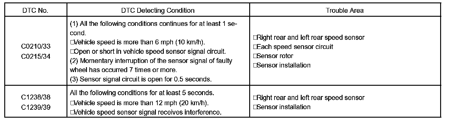 - DTC C0210/33 and C1238/38 are for the right rear speed sensor.
