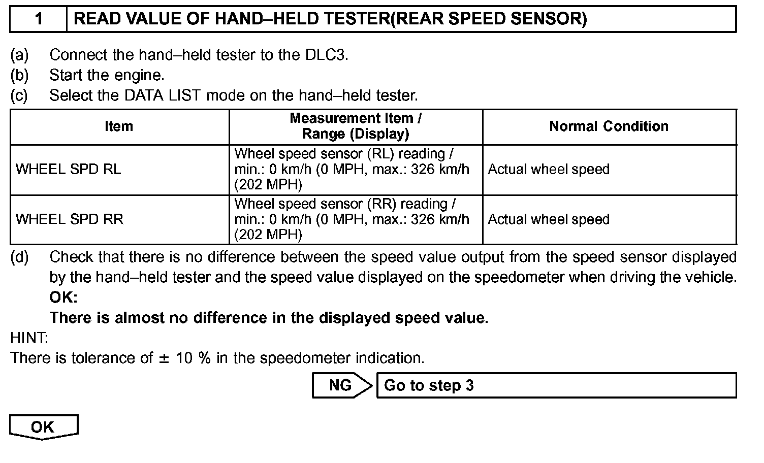 HINT: Start the inspection from step 1 when using the hand-held tester and start from step 3 when not using the hand-held tester.