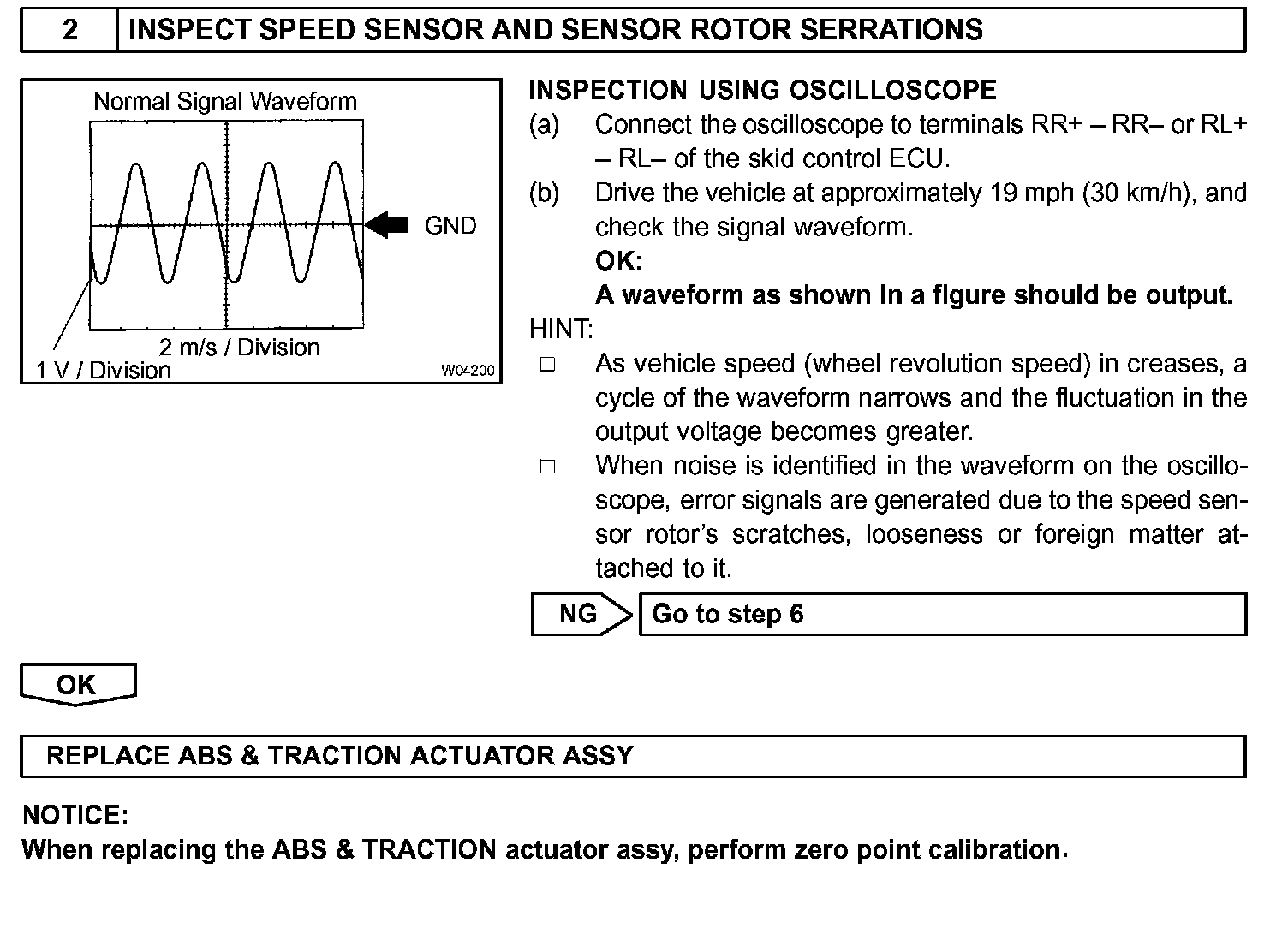 When the rotors rotate, the magnetic field emitted by the permanent magnet in the speed sensor generates AC voltage. Since the frequency of this AC voltage changes in direct proportion to the speed of the rotor, the frequency is used by the ECU to detect the speed of each wheel.