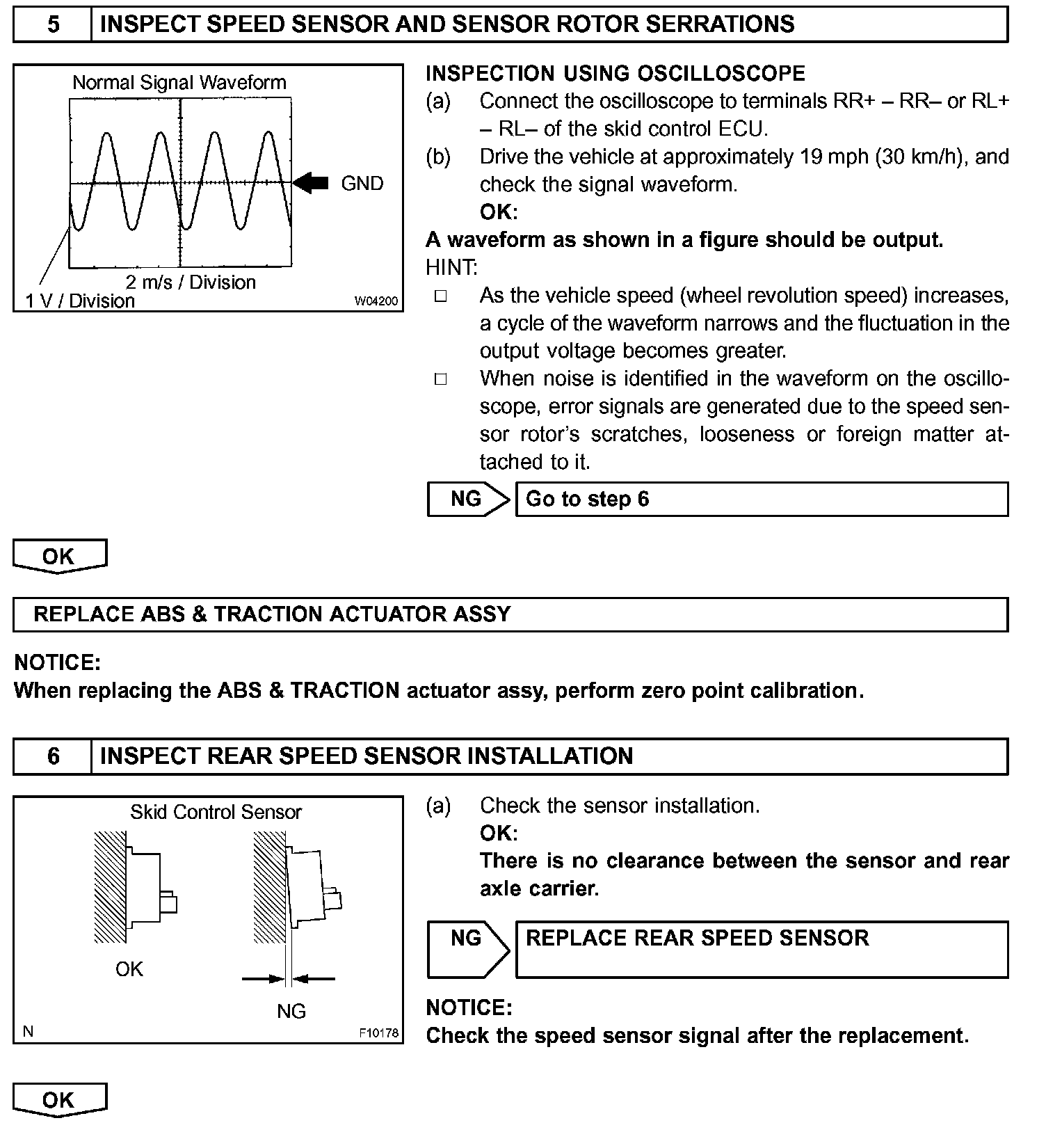 The speed sensor detects wheel speed and sends the appropriate signals to the ECU. These signals are used to control the ABS control system. The front and rear rotors have 48 serrations each.