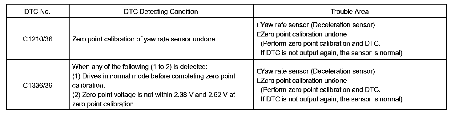 DTC C1336 ZERO POINT CALIBRATION OF DECELERATION SENSOR UNDONECIRCUIT DESCRIPTION