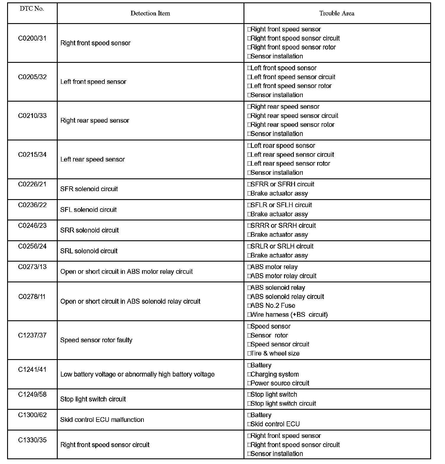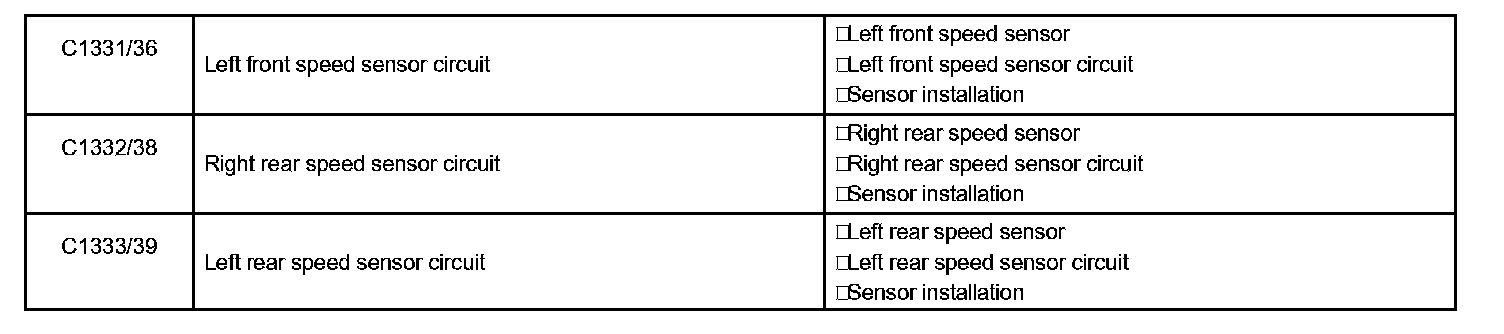 DTC of speed sensor check function