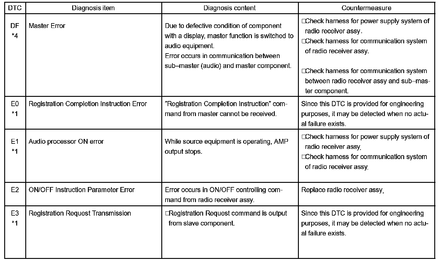 - *4: If the device is reported as not existing during verification, check the power source circuit and AVC-LAN circuit for the device.