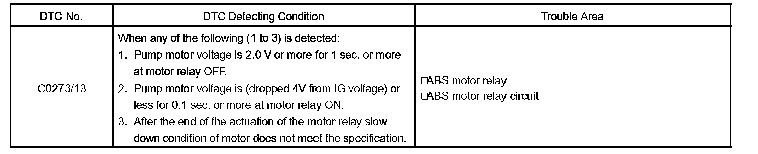 DTC 13 OPEN OR SHORT CIRCUIT IN ABS MOTOR RELAY CIRCUITCIRCUIT DESCRIPTION