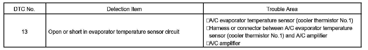 DTC 13 EVAPORATOR TEMPERATURE SENSOR CIRCUITCIRCUIT DESCRIPTION