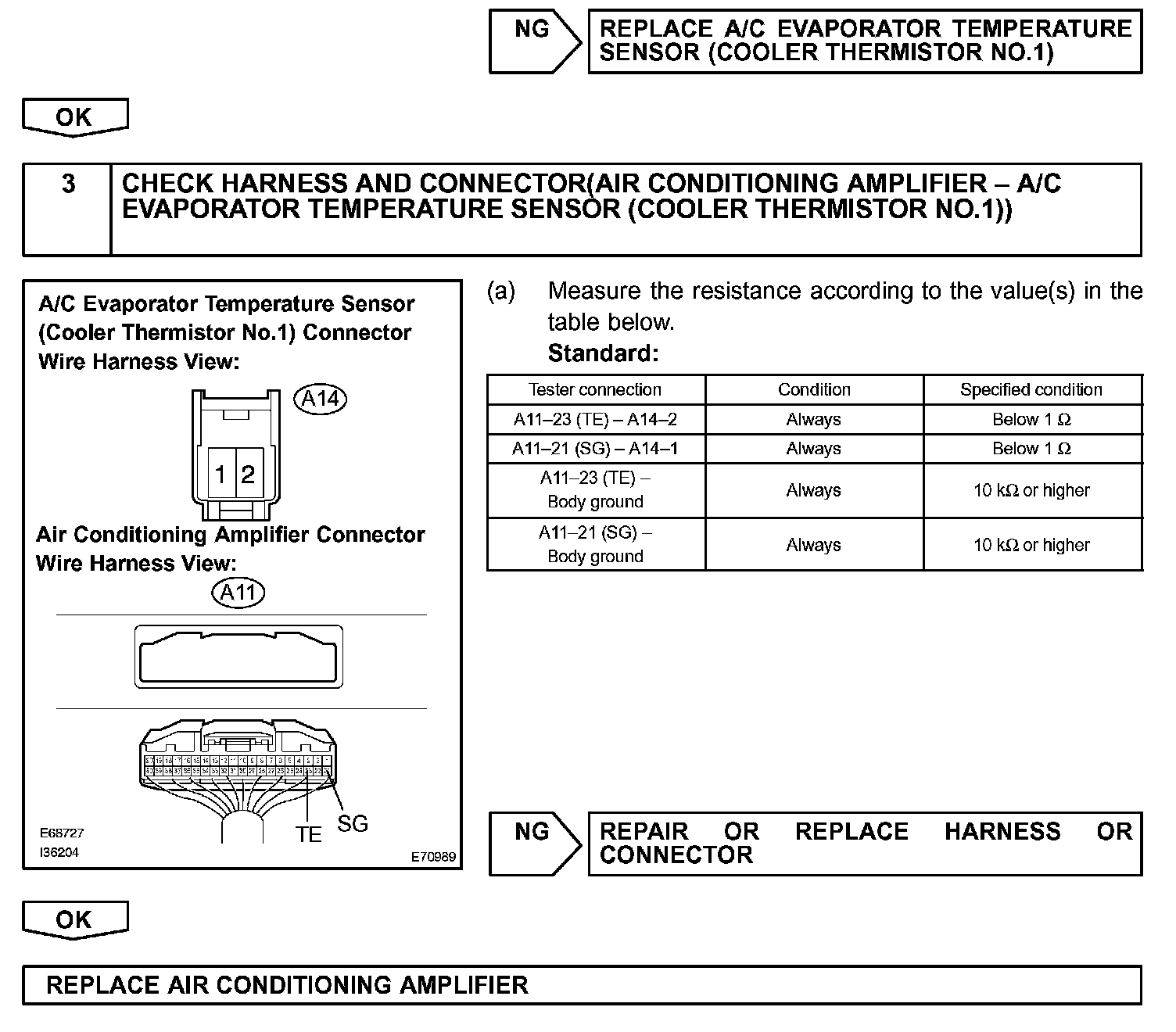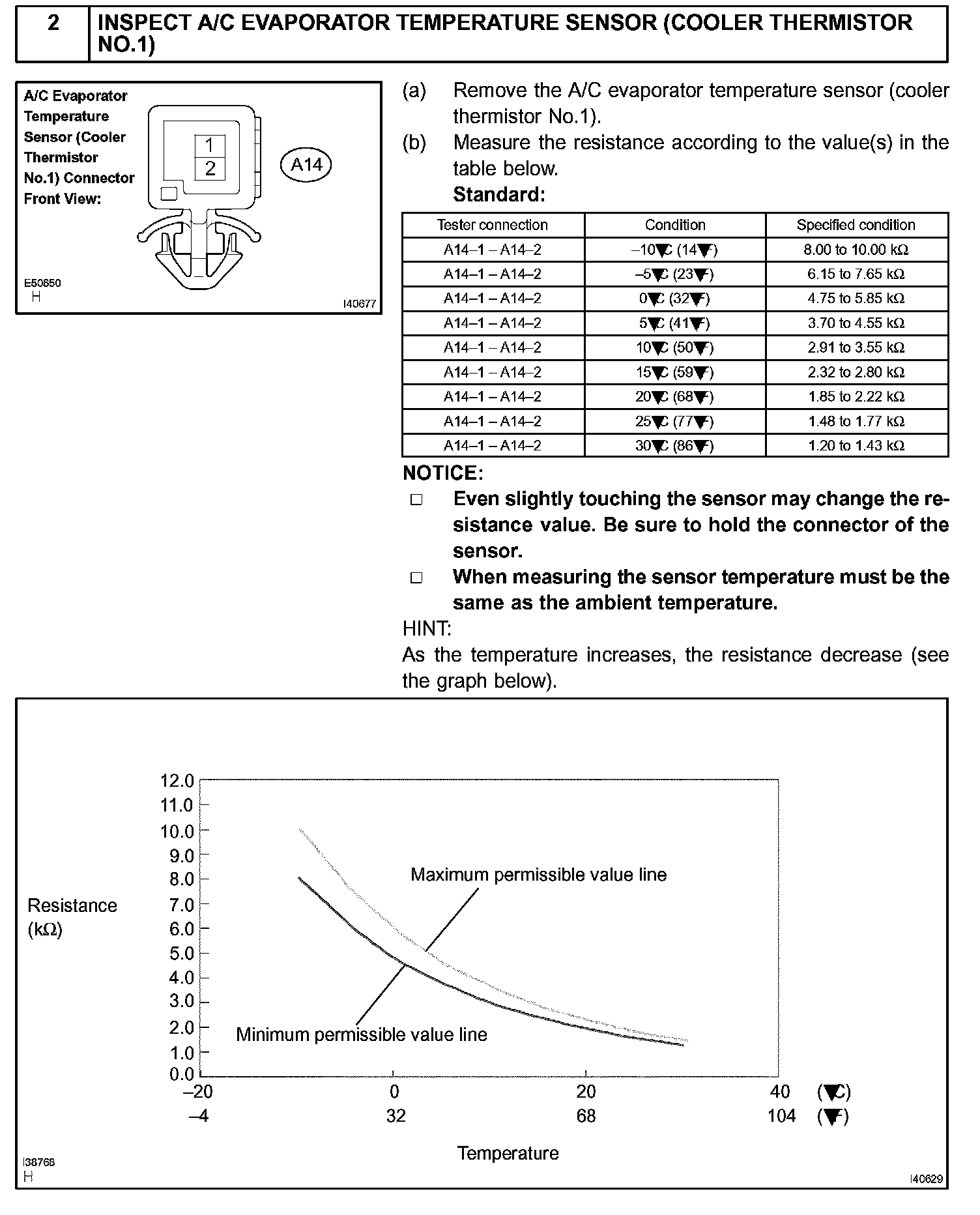 This sensor detects the evaporator temperature and sends the appropriate signals to the A/C amplifier. It is used for frost prevention.