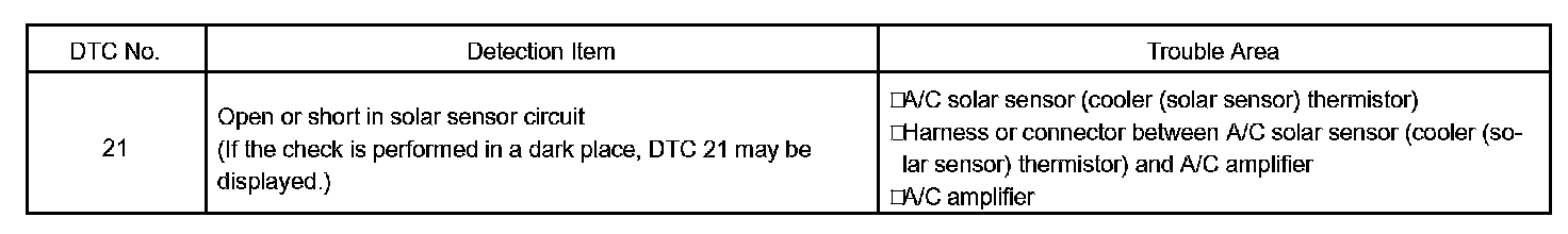DTC 21 SOLAR SENSOR CIRCUITCIRCUIT DESCRIPTION