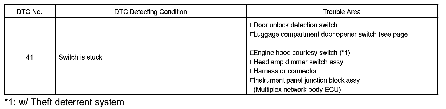 This DTC is not output when the switches are operated but fail to make contact. It is only output when the switches are stuck or held on. For example, this code is output when checking the DTC while the switches are on: