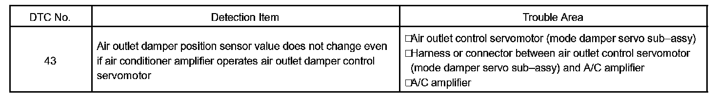 DTC 43 AIR OUTLET DAMPER CONTROL SERVOMOTOR CIRCUITCIRCUIT DESCRIPTION