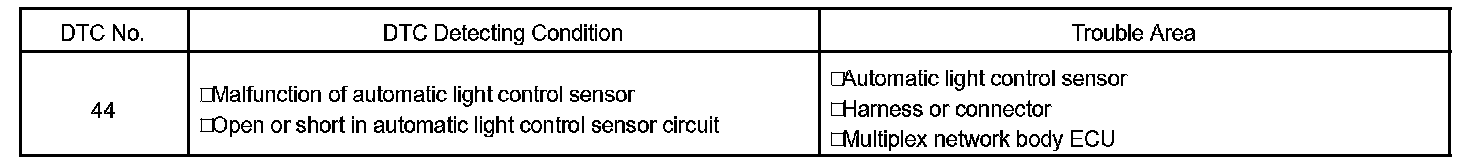 DTC 44 LIGHT SENSOR CIRCUIT MALFUNCTION