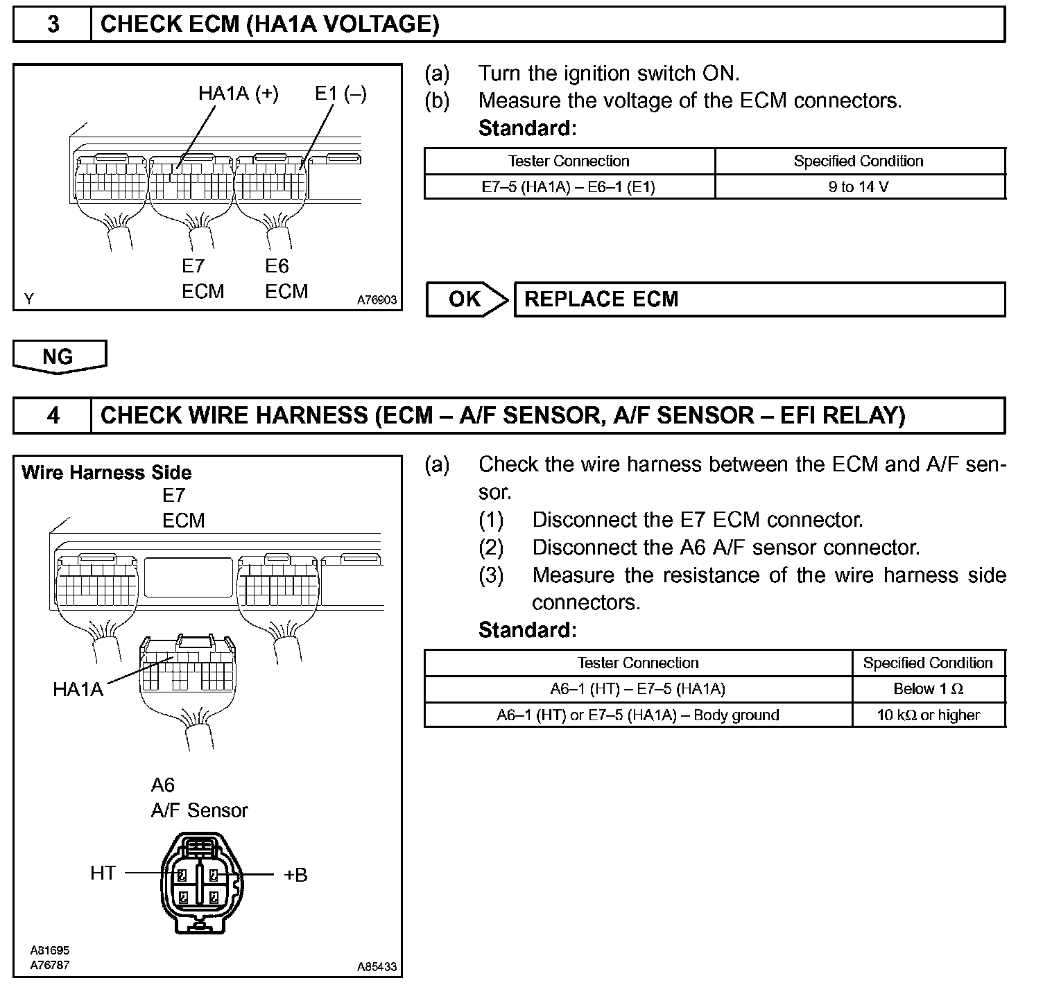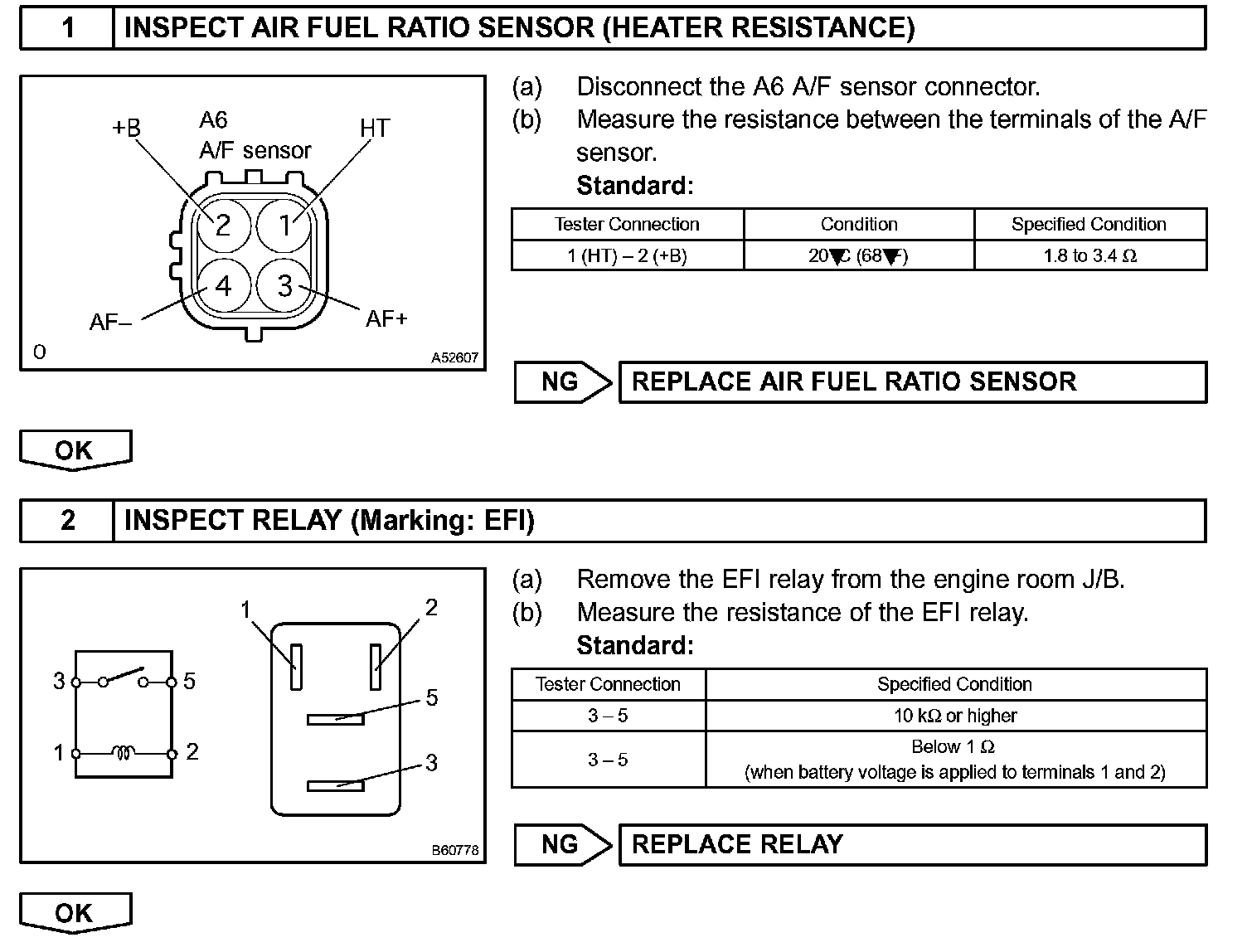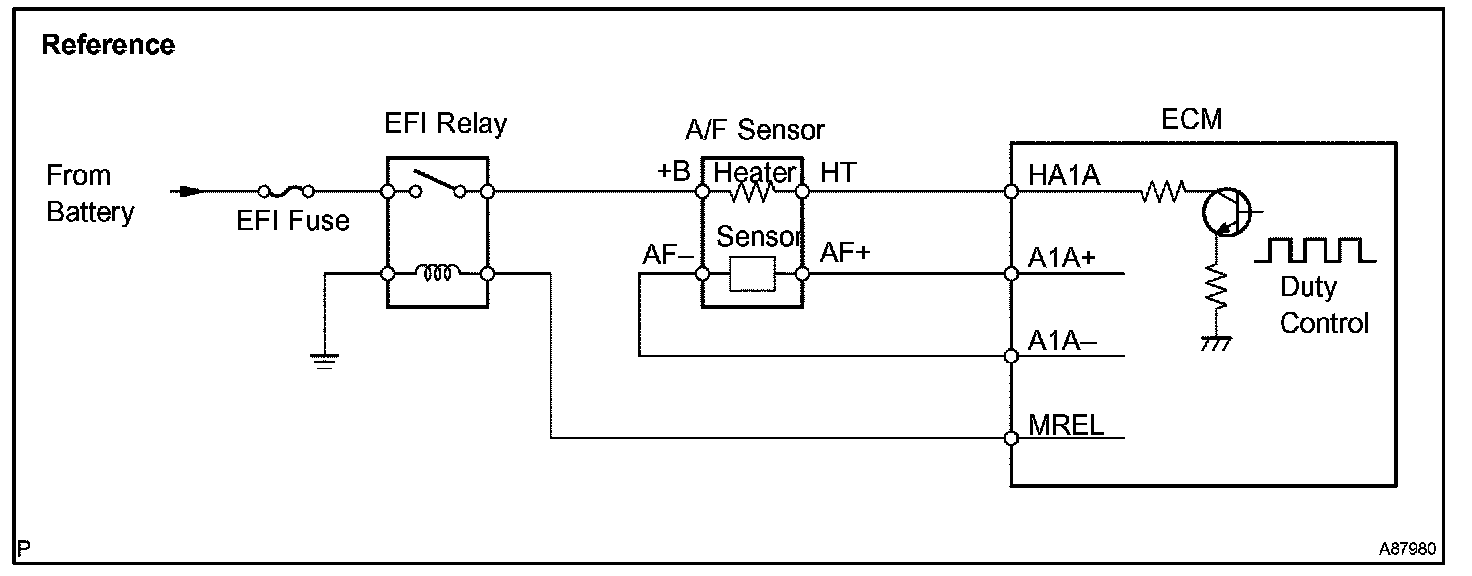 HINT: The ECM provides a pulse width modulated control circuit to adjust current through the heater. The A/F sensor heater circuit uses a relay on the +B side of the circuit.