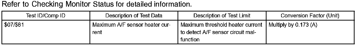 The inner surface of the sensor element is exposed to outside air. The outer surface of the sensor element is exposed to exhaust gas. The sensor element is made of platinum coated zirconia and includes an integrated heating element. The zirconia element generates a small voltage when there is a large difference in the oxygen concentrations of the exhaust and the outside air. The platinum coating amplifies the voltage generation. When heated, the sensor becomes very efficient. If the temperature of the exhaust is low, the sensor will not generate useful voltage signals without supplemental heating. The ECM regulates the supplemental heating using a duty-cycle approach to regulate the average current in the heater element. If the heater current is out of the normal range, the sensor's output signals will be inaccurate and the ECM cannot regulate the A/F ratio properly.
