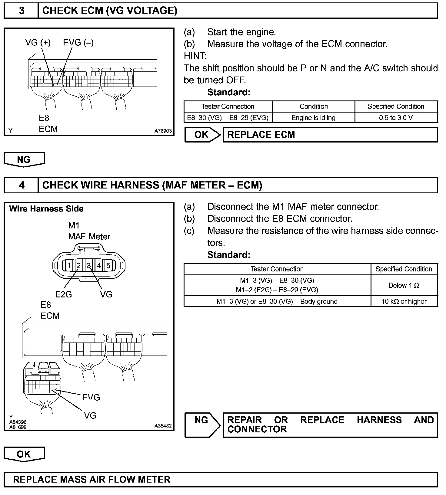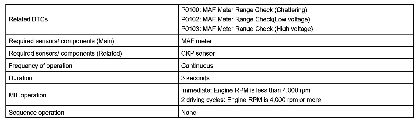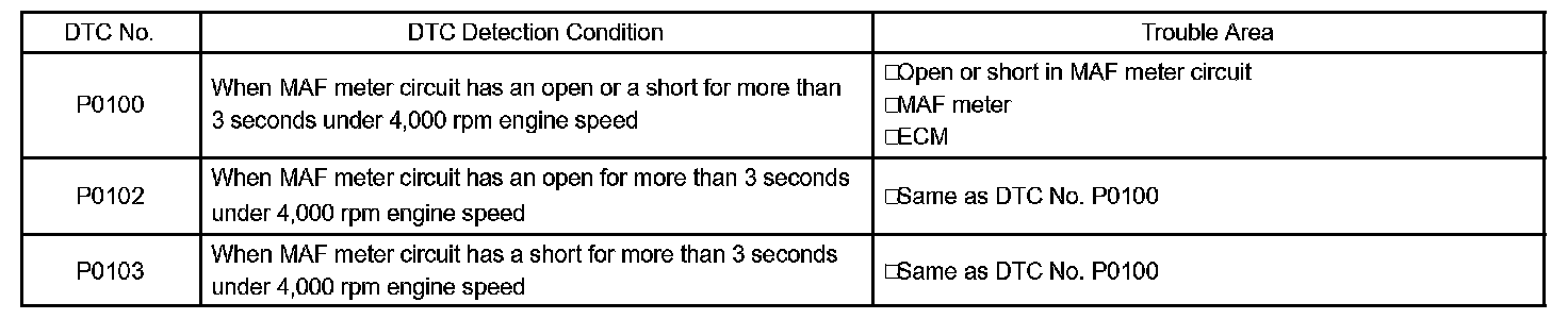 If there is a defect in the sensor or an open or short circuit, the voltage level will deviate outside the normal operating range. The ECM interprets this deviation as a defect in the MAF meter and sets a DTC.