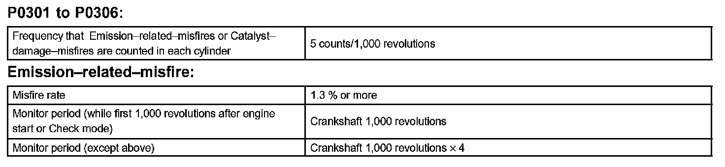 - During the first 1,000 engine revolutions after the engine starts, an excessive misfire rate (approximately 20 to 50 misfire per 1,000 engine revolutions) occurs 1 time.