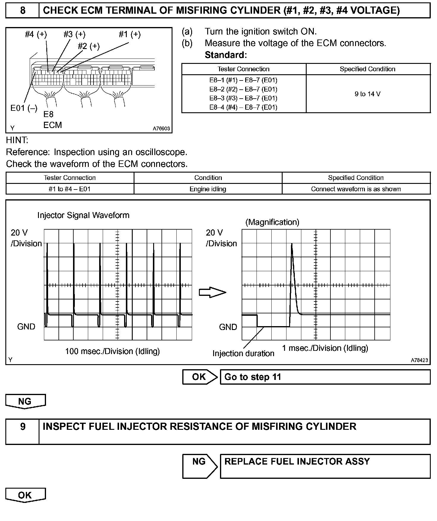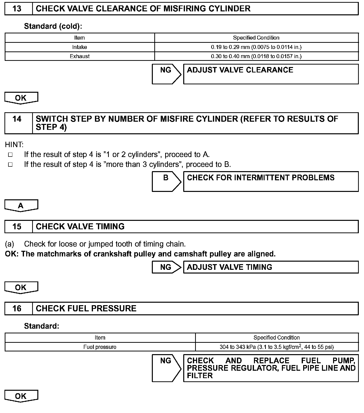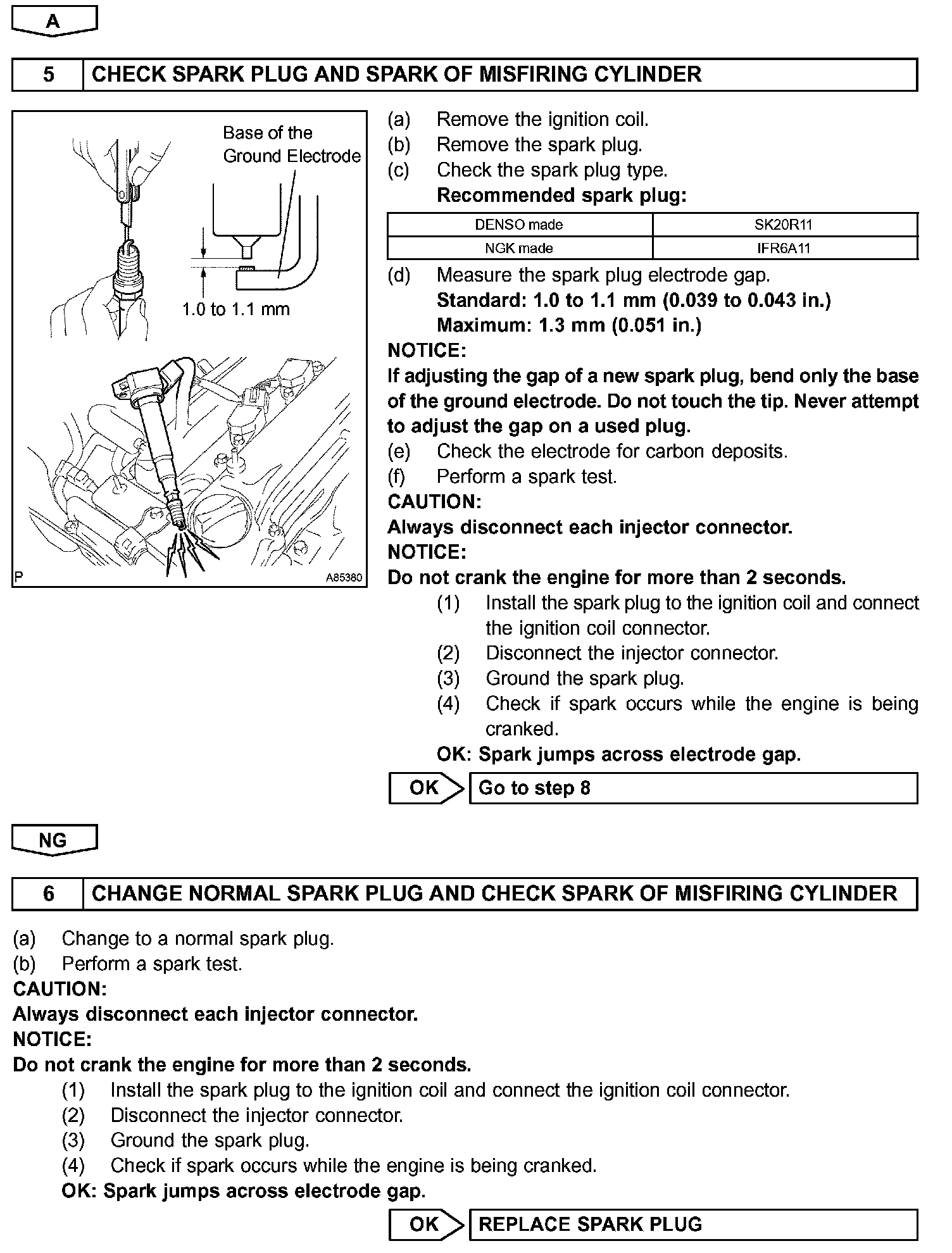 - If the misfire cannot be reproduced, the following reasons may apply: 1) the vehicle has low fuel, 2) improper fuel is being used, and 3) the ignition plug is contaminated.