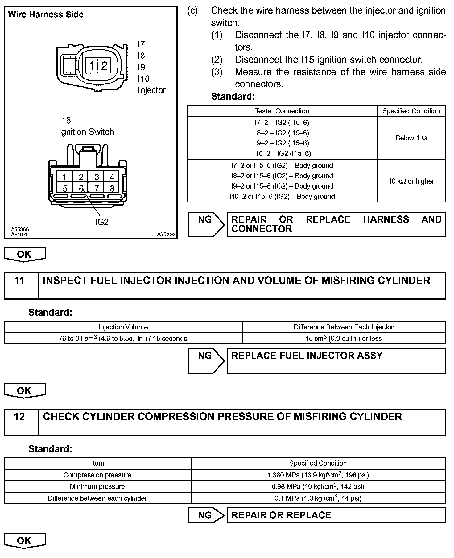 4. Perform repairs on the cylinder that has a high misfire ratio. Or repair the cylinder indicated by the DTC.