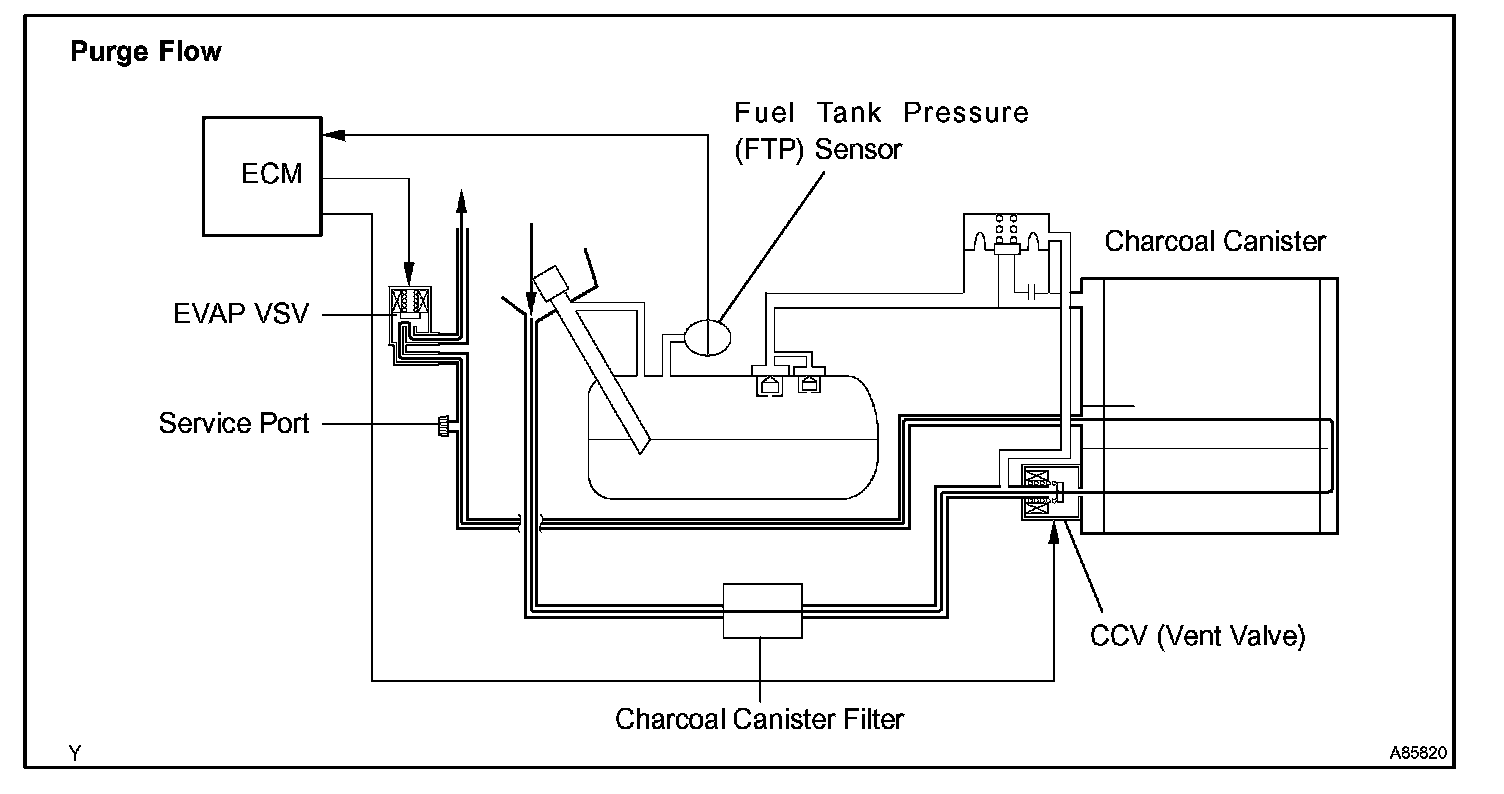 1. After the EVAP VSV purges the EVAP from the fuel tank into the intake manifold, the CCV draws fumes from the fuel tank into the charcoal canister.