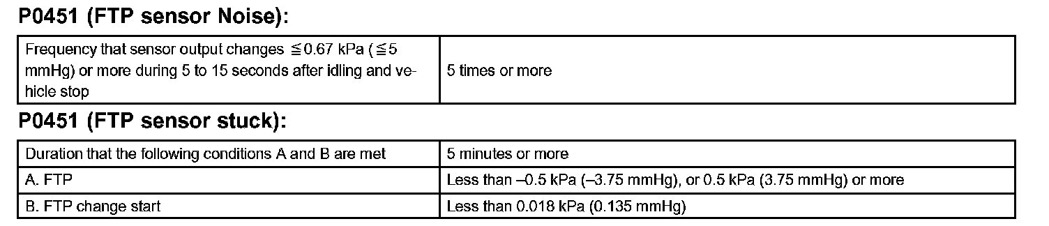 a. The ECM monitors the fluctuation of electrical signals while the engine is idling. If the pressure signal varies beyond a specified range more than 7 times, the ECM interprets this as a fault in the vapor pressure sensor.