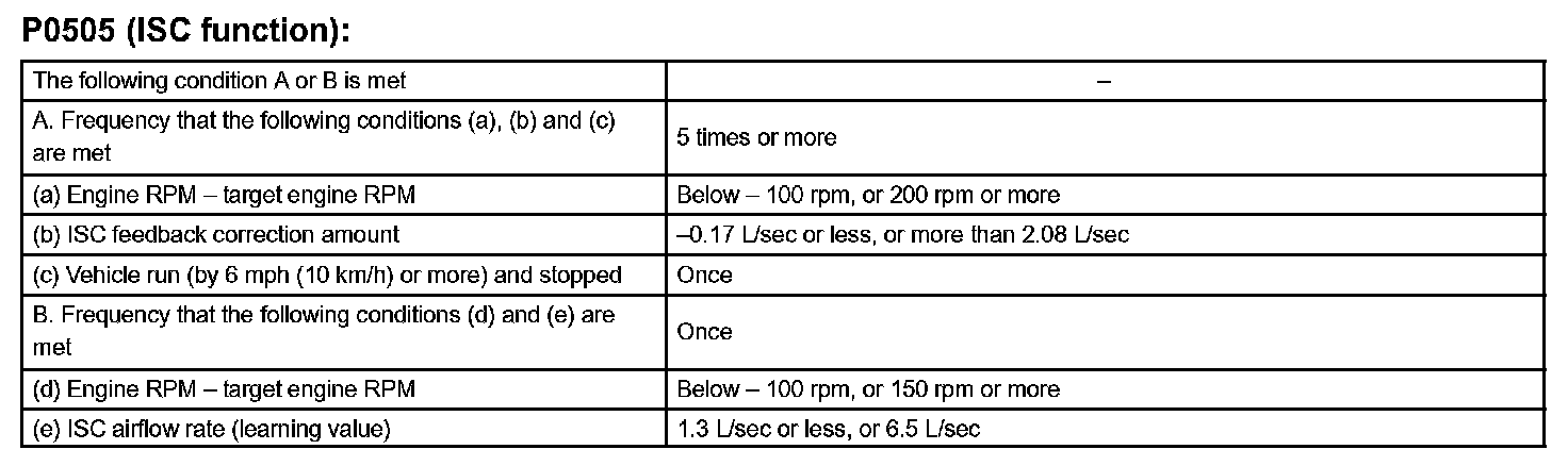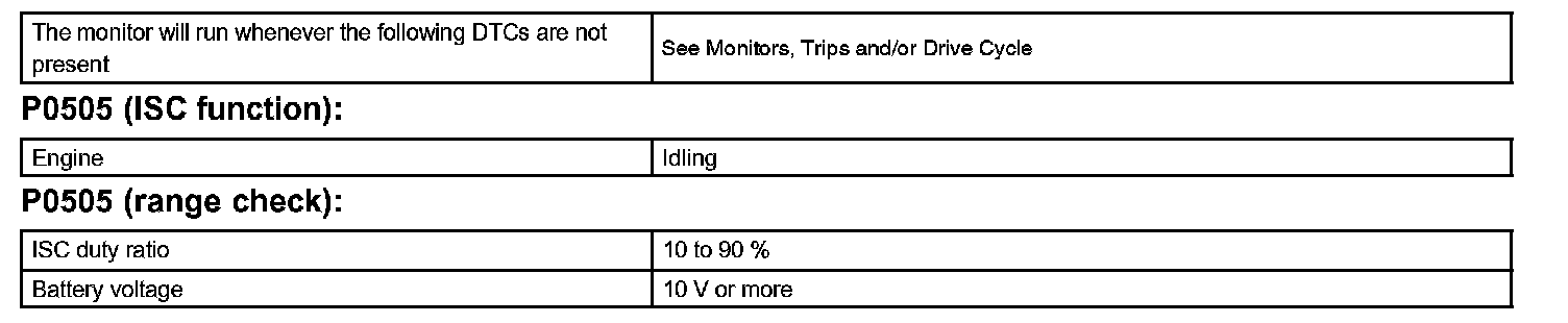 DTC P0505 IDLE AIR CONTROL SYSTEMMONITOR DESCRIPTION