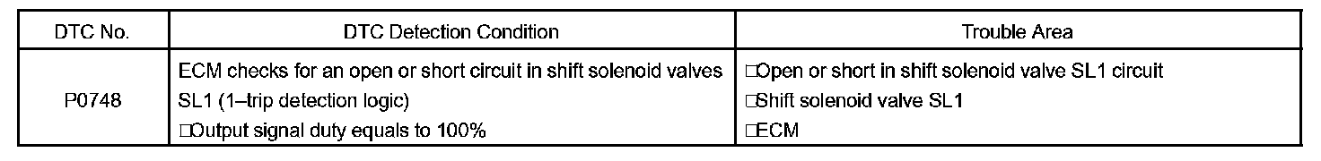 DTC P0748 PRESSURE CONTROL SOLENOID "A" ELECTRICAL (SHIFT SOLENOID VALVE SL1)CIRCUIT DESCRIPTION