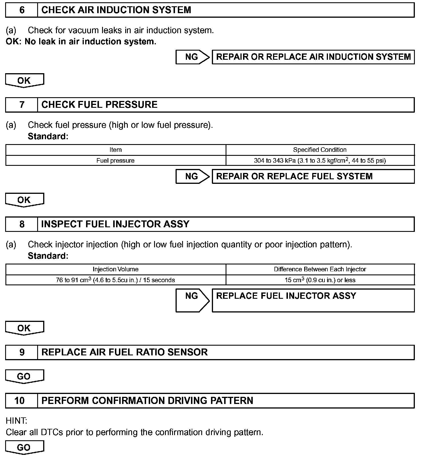 HINT: The A/F CONTROL operation lowers the injection volume 12.5 % or increases the injection volume 25 %.
