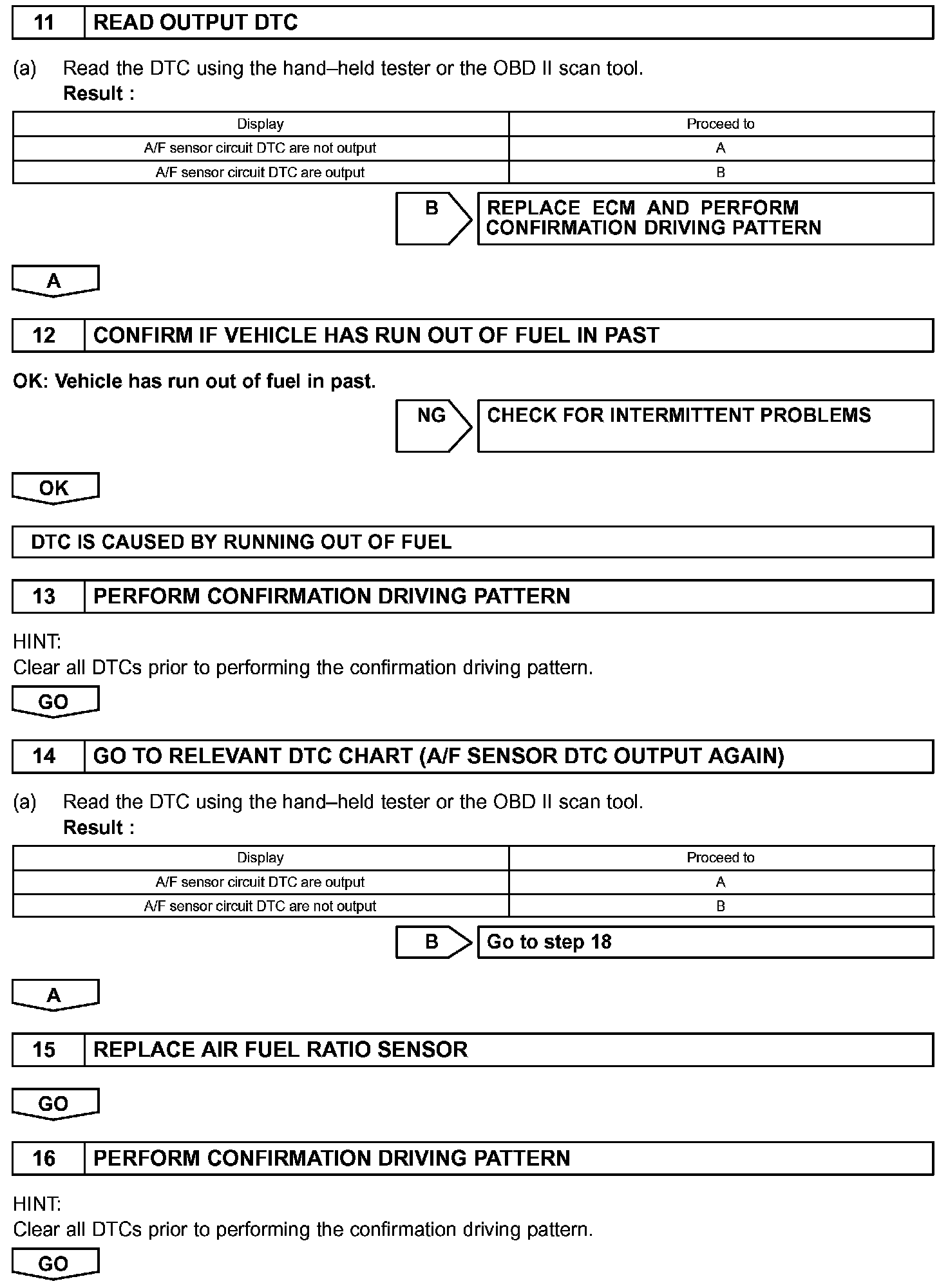 - The A/F sensor's output voltage and the short-term fuel trim value can be read using the OBD II scan tool or the hand-held tester.