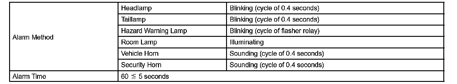 a. If the alarm is set off (tampering is detected) while the theft deterrent system is armed, the alarm memory function will record it. Whenever the theft deterrent system is cancelled, the alarm memory function causes the taillamps to illuminate for 2 seconds in order to inform you that the alarm has been set off.