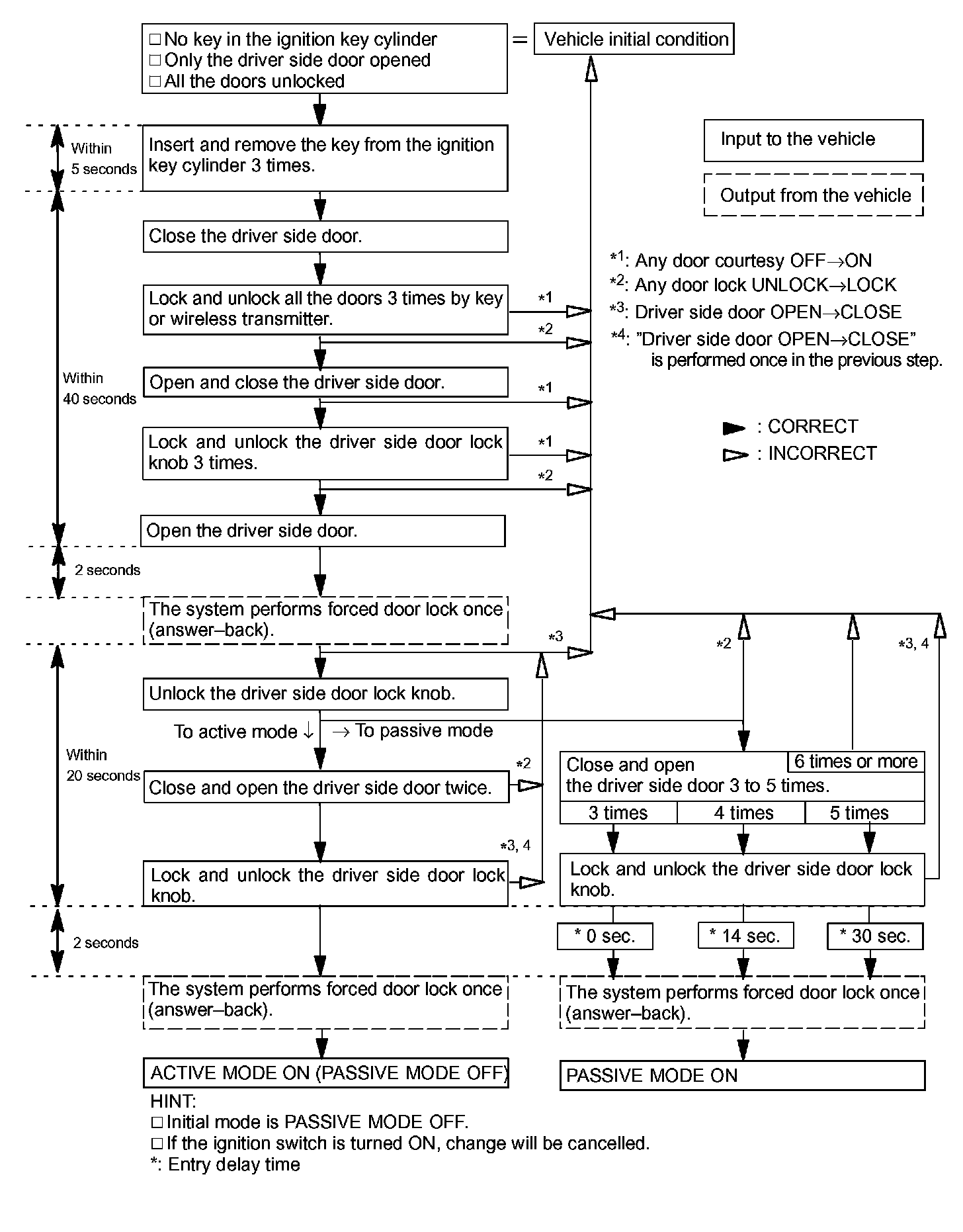 - A forced door lock signal is not output during passive arming mode (see step 5).