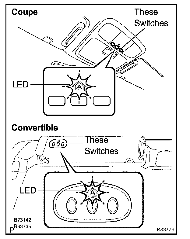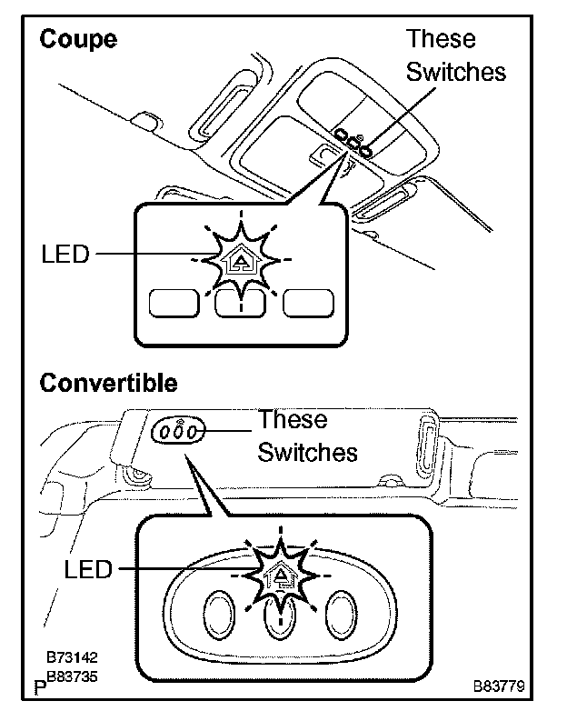 HINT: The vehicle's garage door opener records transmitter codes for systems such as garage doors, gates, entry gates, door locks, home lighting systems, security systems or other transmitter-code based systems. The garage door opener is built into the dome lamp No. 1. If replacing the dome lamp No. 1, transmitter codes for any systems previously registered in the garage door opener must be re-registered.