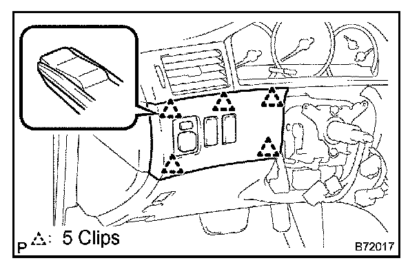 a. Disengage the 5 clips and remove the instrument cluster finish panel lower, then disconnect the connectors.