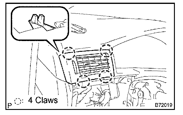 a. Disengage the 4 claws and remove the instrument panel register assy No.1.