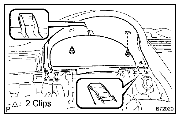 a. Remove the 2 clips from the instrument cluster finish panel sub-assy.