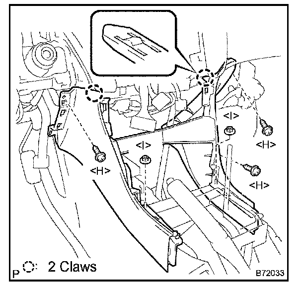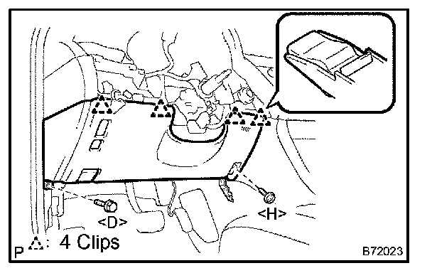b. Disengage the claw and remove the clip and the instrument panel finish lower panel RH.