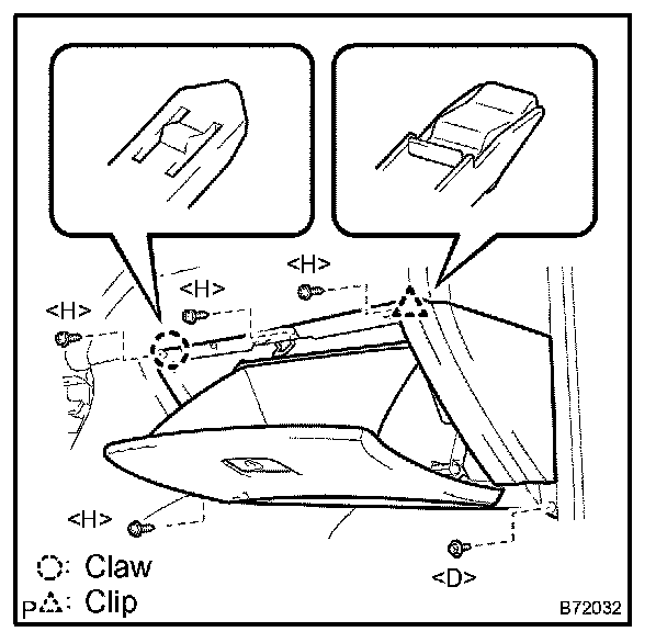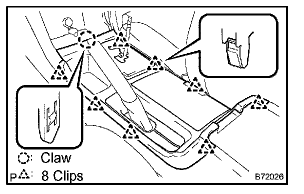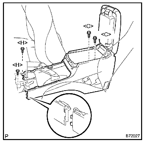 b. Disengage the 2 claws and remove the console box sub-assy rear w/console door.