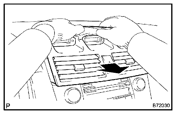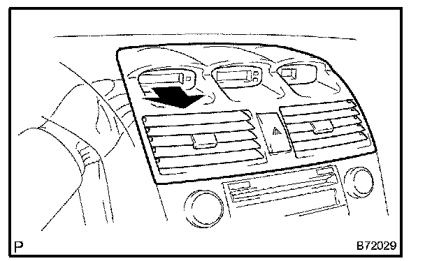 b. Pull the instrument cluster finish panel sub-assy center towards you using your fingers to disengage each clip.