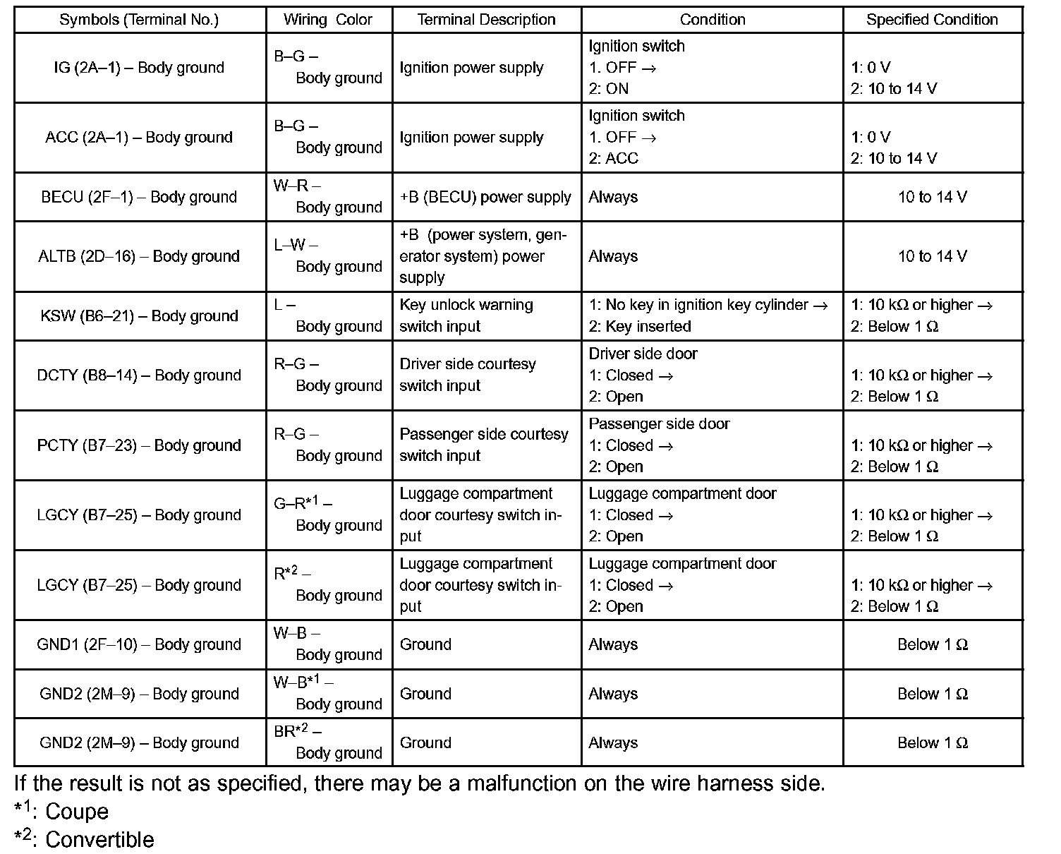 c. Measure the voltage and resistance of the wire harness side connectors.