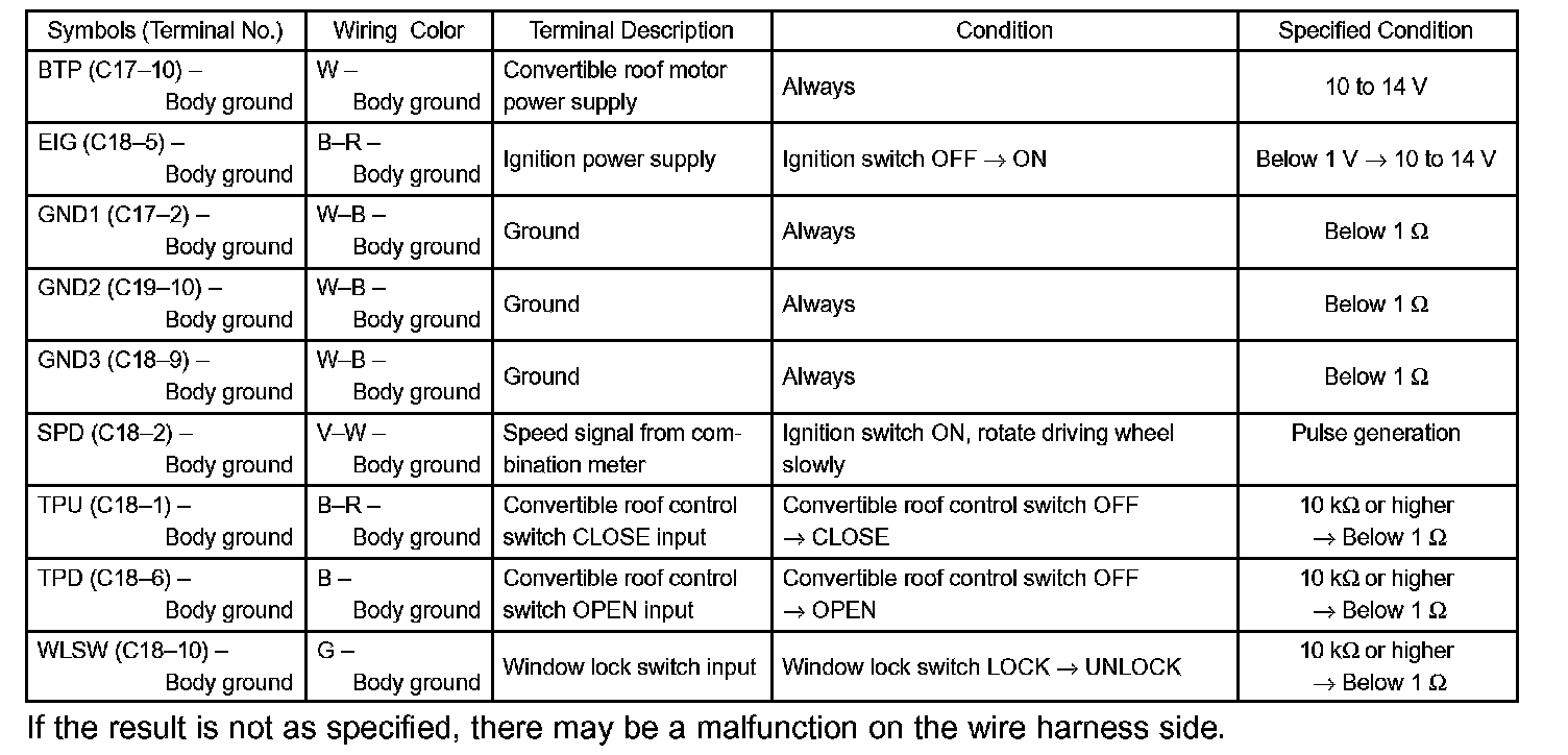 CHECK CONVERTIBLE ROOF CONTROL ECU
