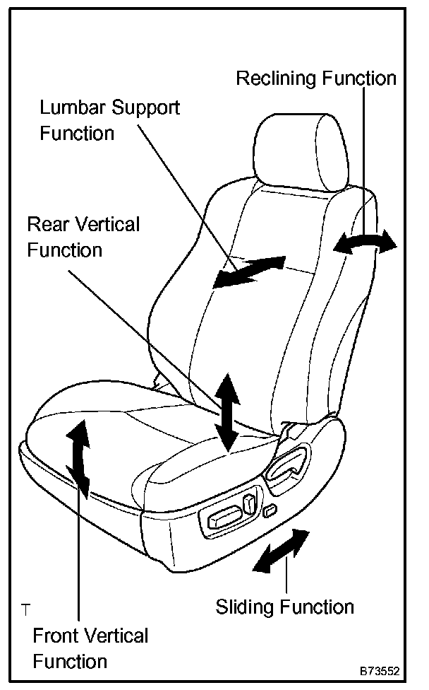 1. Choose a power seat function. Operate the power seat switch and move the seat to the maximum in one direction. Keep the seat in that position for approximately 60 seconds.