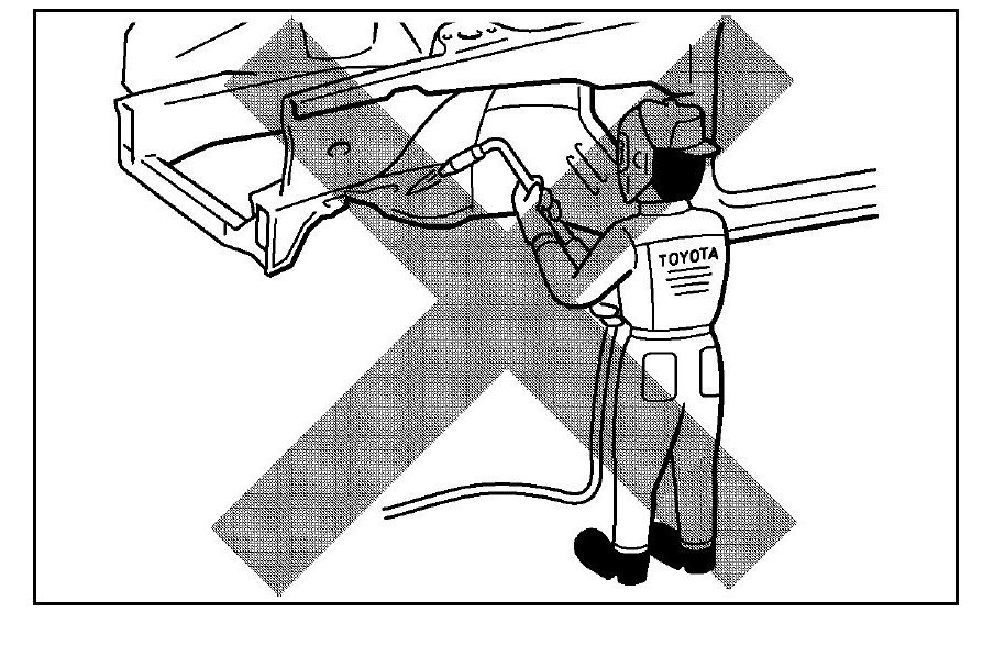 Toyota prohibits the use of the heat repair method on body structure panels when repairing a vehicle damaged in a collision.