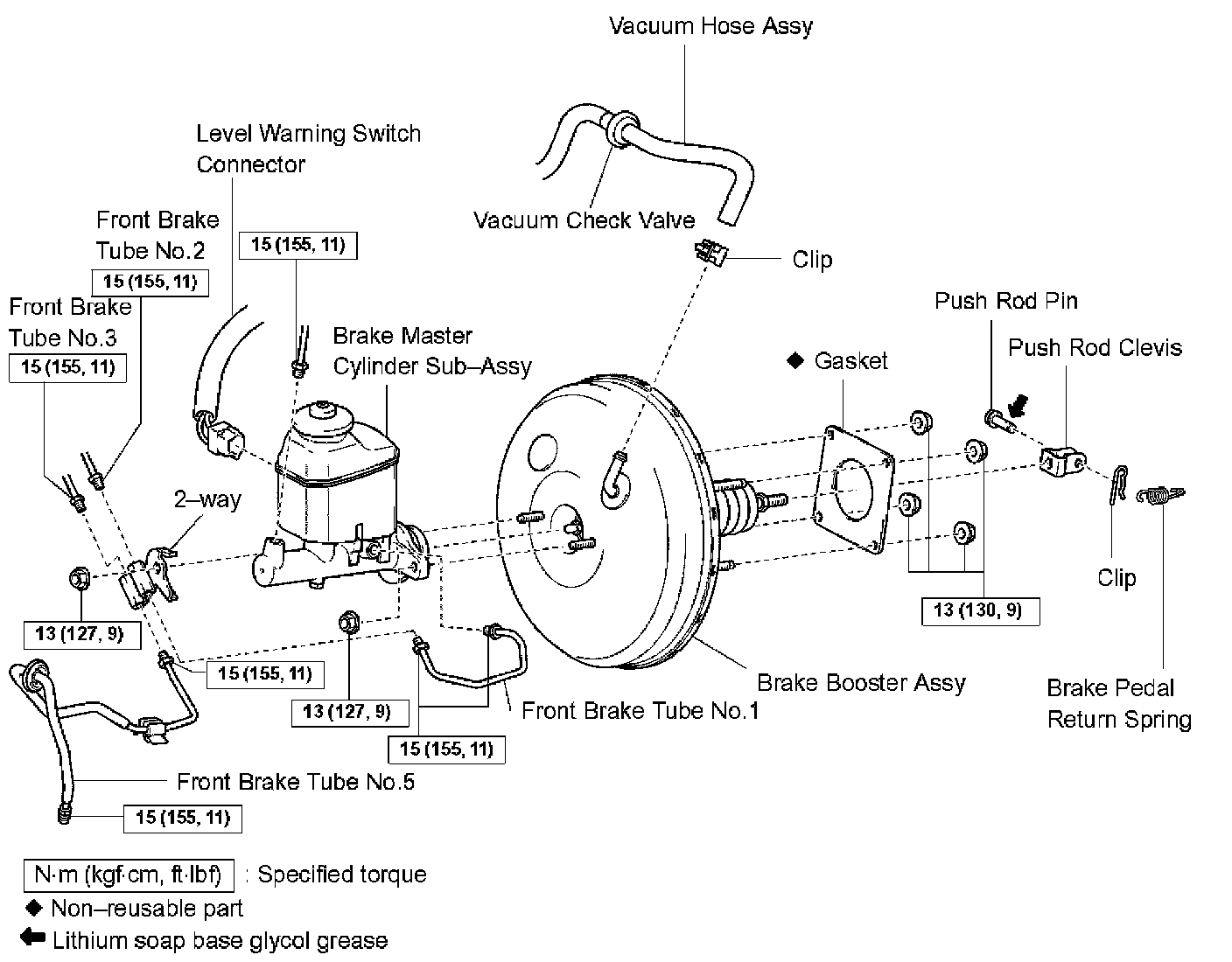 g. Apply lithium soap base glycol grease to a new O-ring and install the O-ring to the master cylinder.
