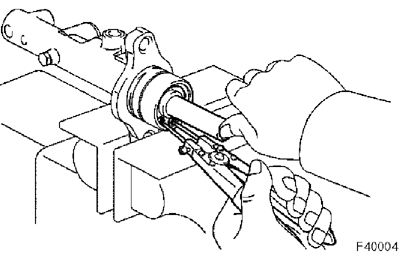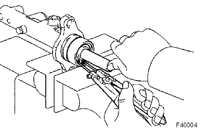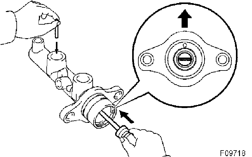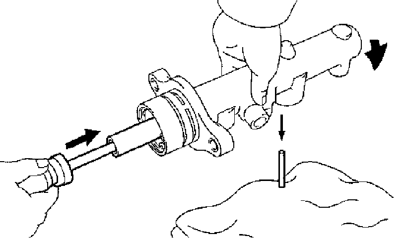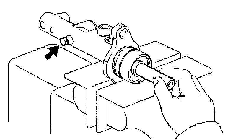 d. Push in the piston with a screwdriver, and remove the straight pin by turning the cylinder body.
