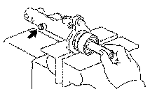 ^ If the piston is inserted at an angle, the cylinder bore could be damaged.